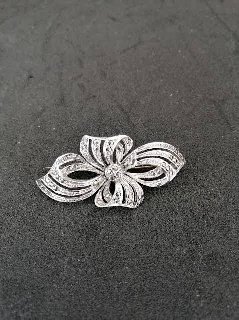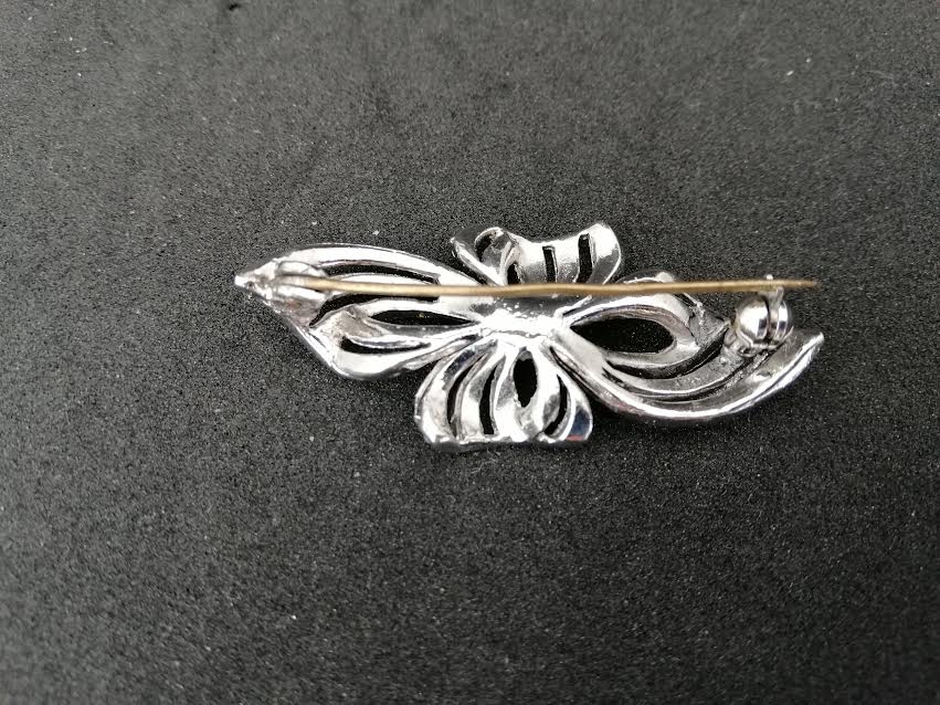 Broche en métal argenté avec des petits brillants