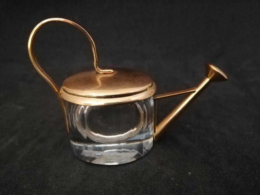 Horloge quartz miniature de collection en métal doré et verre en forme arrosoir
