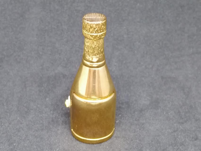 Horloge quartz en forme de bouteille en métal doré