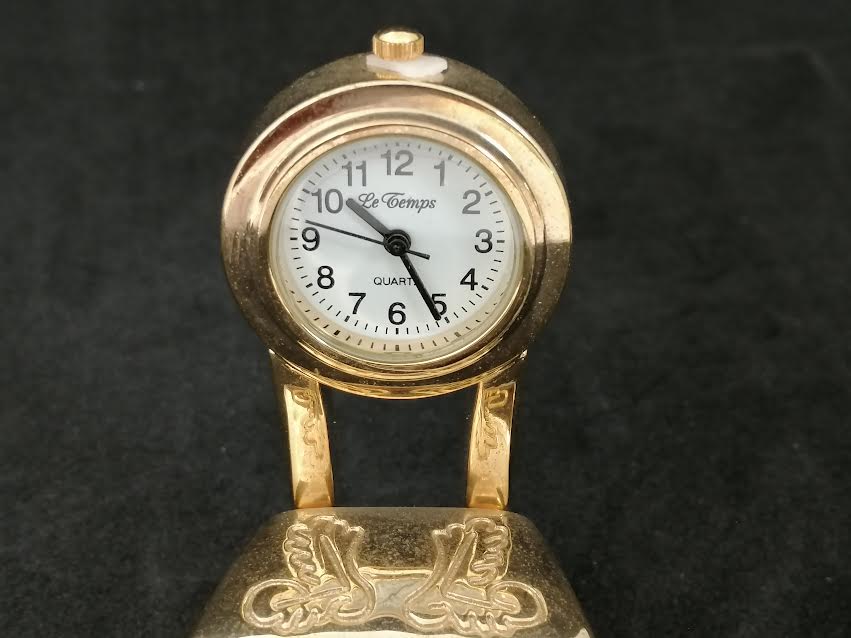 Horloge quartz en forme de chaise, en métal doré