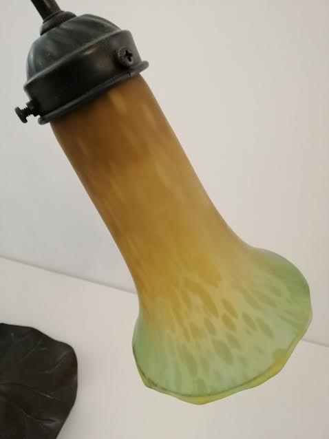 Lampe Art Déco en fer et verre coloré