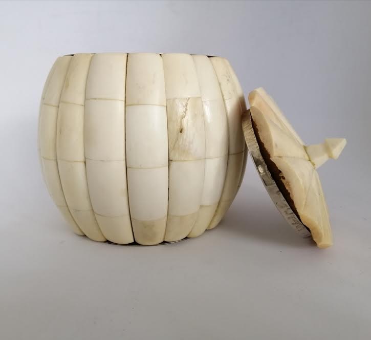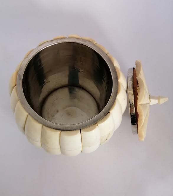 Pot et couvercle recouvert d’os véritable. Intérieur bien isolé en métal.