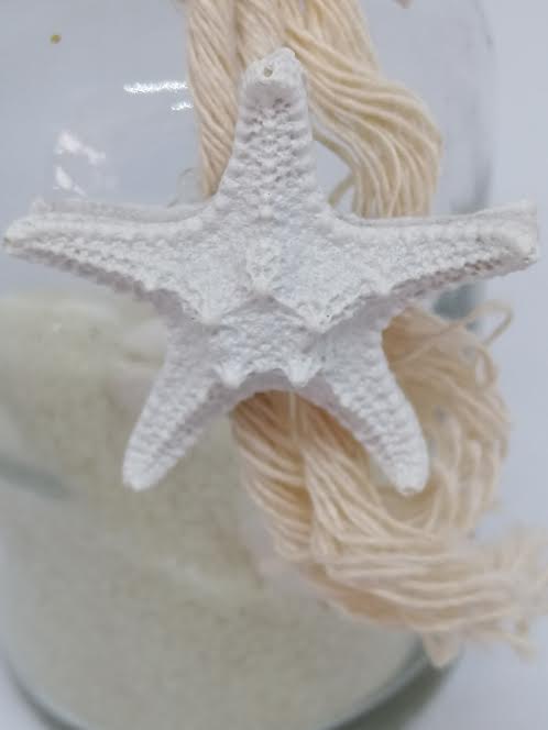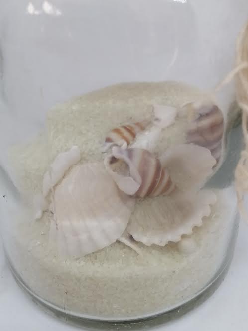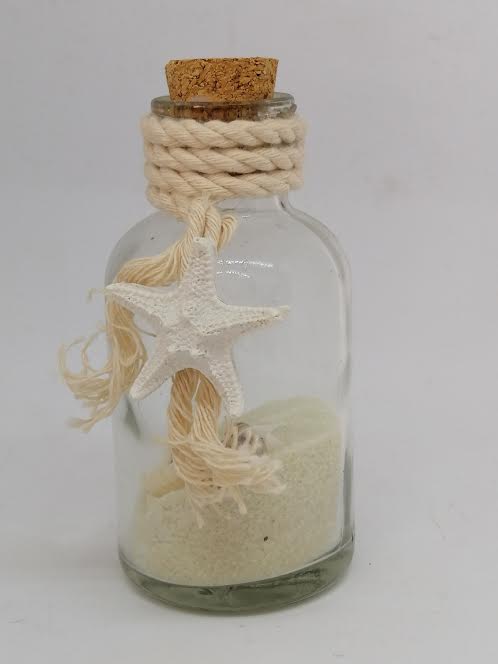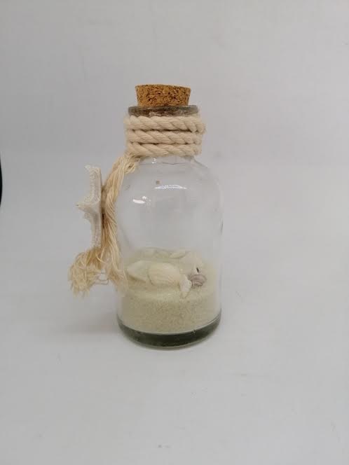 Décor bord de mer, sable et coquillages. Bouchon en liège.