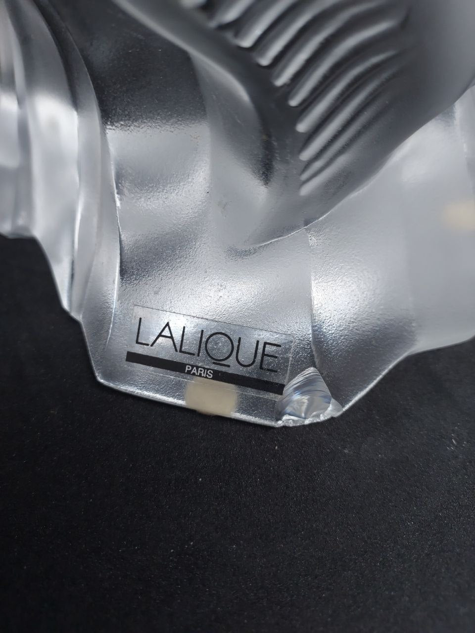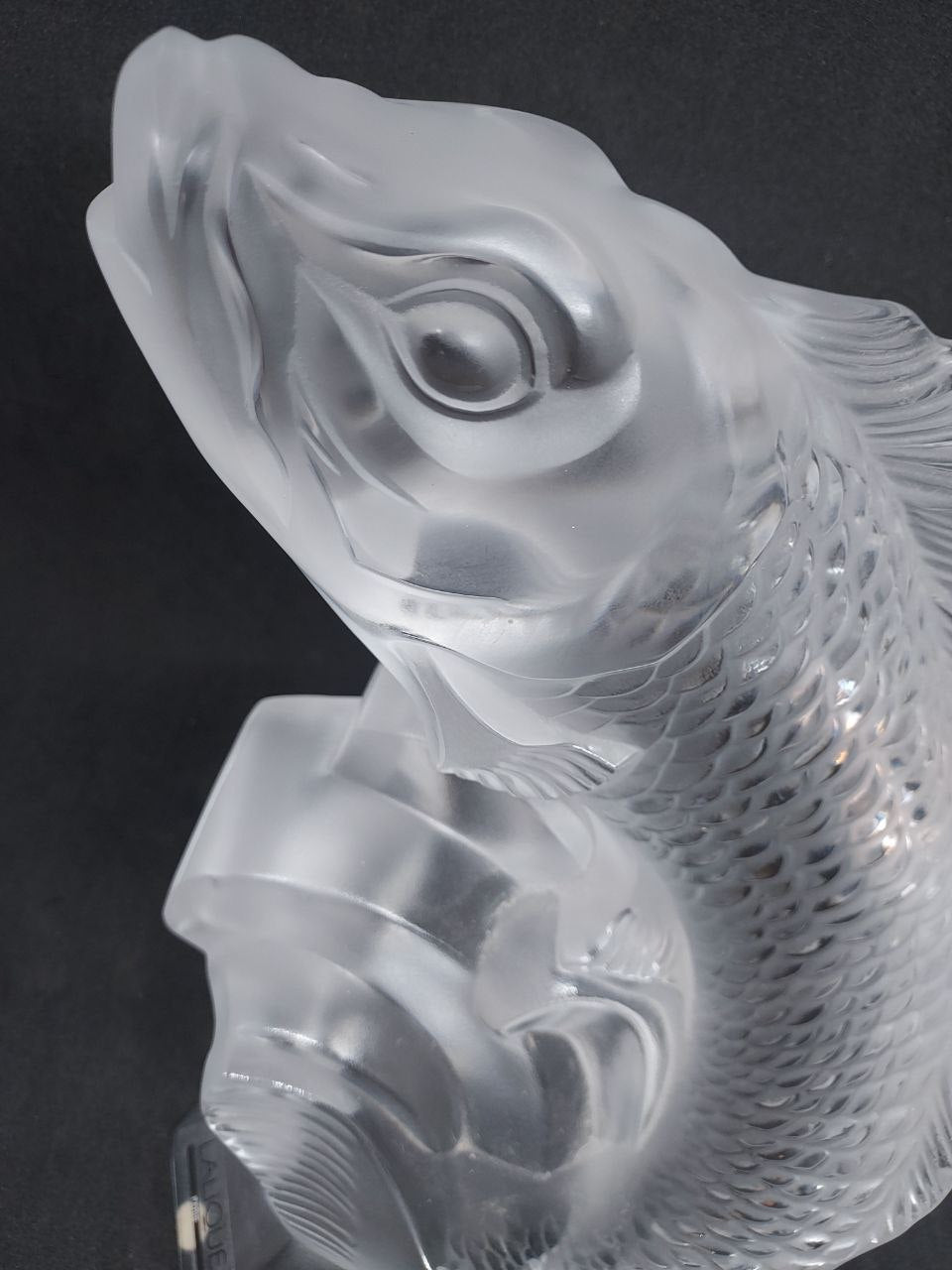 Poisson en cristal Lalique, manque d’un petit morceau sur la base (voir photo).