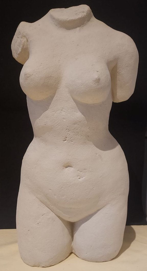 Sculpture représentant un buste de femme, de style classique, en plâtre naturel (roche).