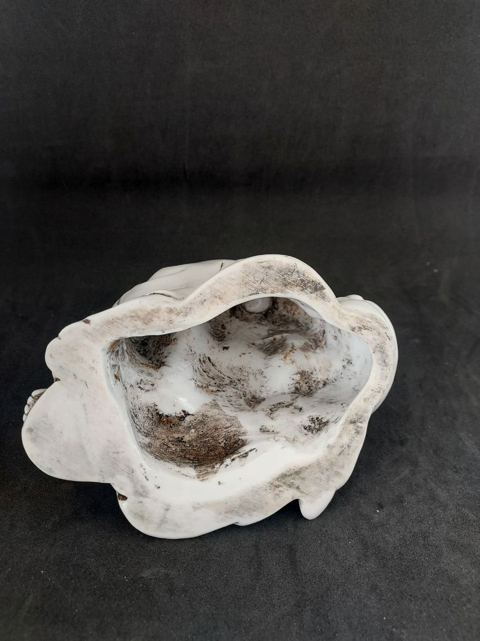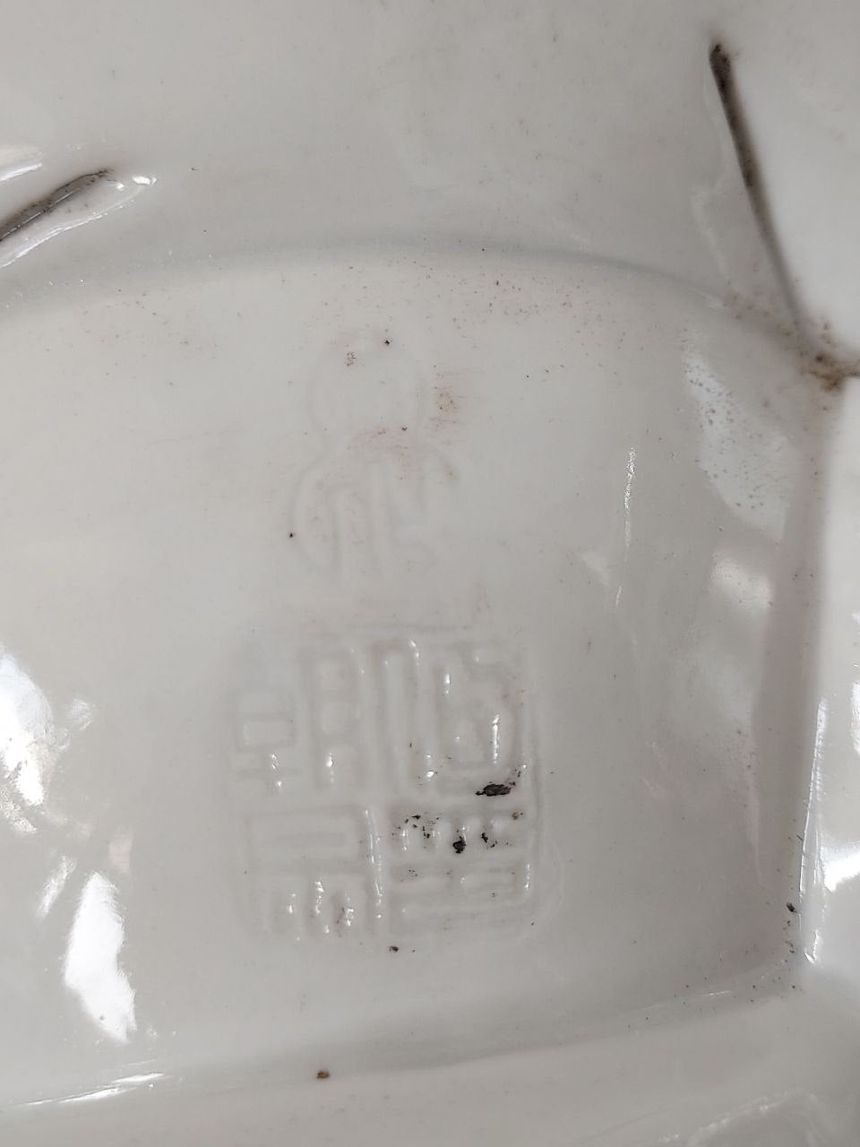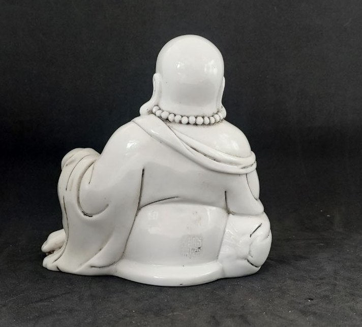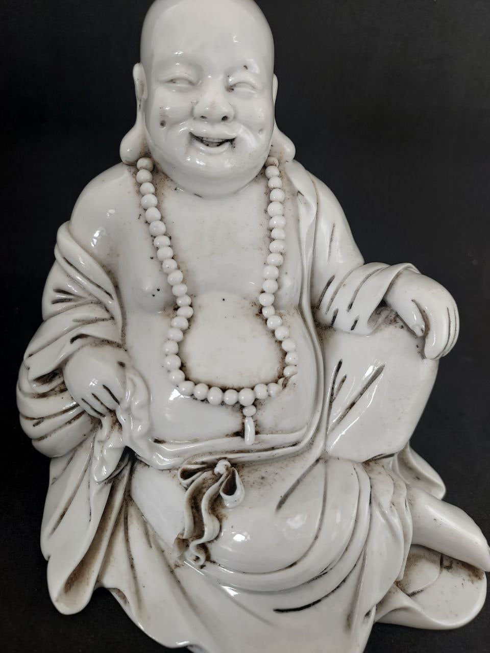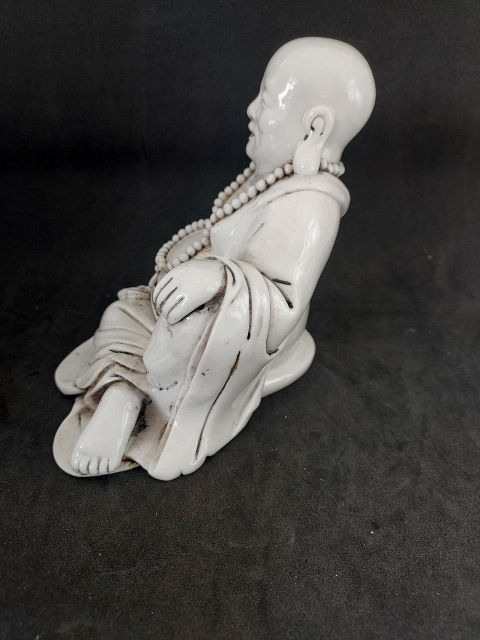Statuette en blanc de Chine, fin XIXe siècle, représentant Bouddha. Timbre en relief.