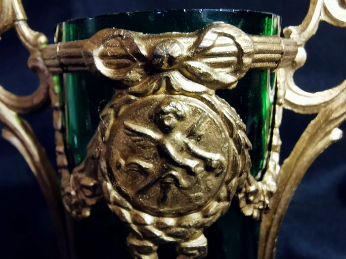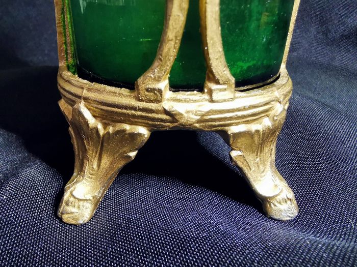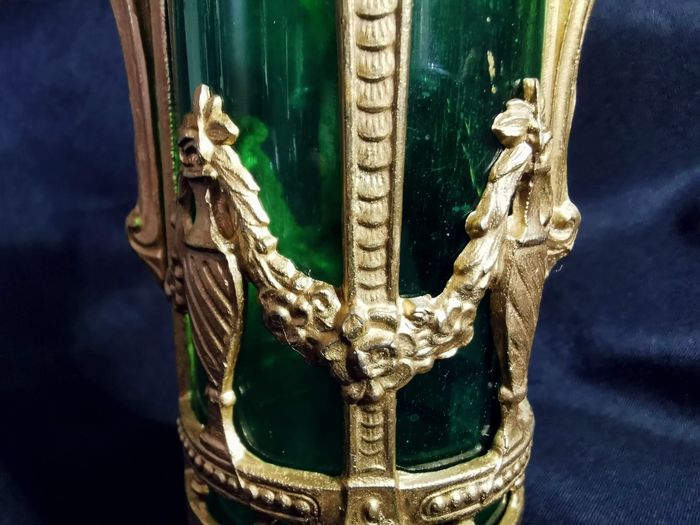 Matériau: Cristal, métal doréÉpoque estimée: Fin du XIXe sièclePays d’origine: FranceÉtat: Bon état - Utilisé, présentant de petites traces de vieillissementDimensions: 23×13 cm