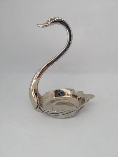 Vide poche en forme de cygne, métal argenté.